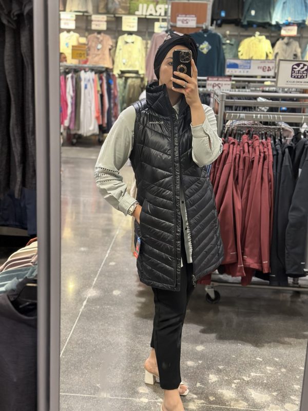 Columbia Uzun Kadın Yelek – Siyah , uzun ve hafif tasarımıyla soğuk havalarda sıcaklık sunar. Canlı turkuaz rengi sayesinde her kombine enerjik bir hava katar.