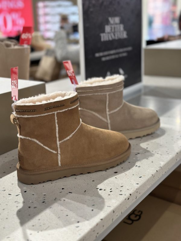 UGG Örgü Geçişli Bot – Kestane, zarif örgü detayları ve yumuşak iç astarıyla soğuk havalarda sıcaklık sağlar. Kış kombinlerine hem şıklık hem de rahatlık katan bir bot!